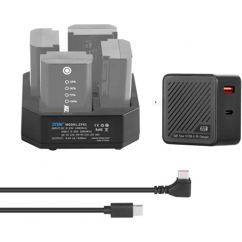 ZITAY 4-канальная станция быстрой зарядки типа C с адаптером быстрой зарядки PD 65 Вт для аккумуляторов Sony NP-FZ100, совместимая с камерами Sony A9 A7III A7RIII, с ЖК-дисплеем (комплект)