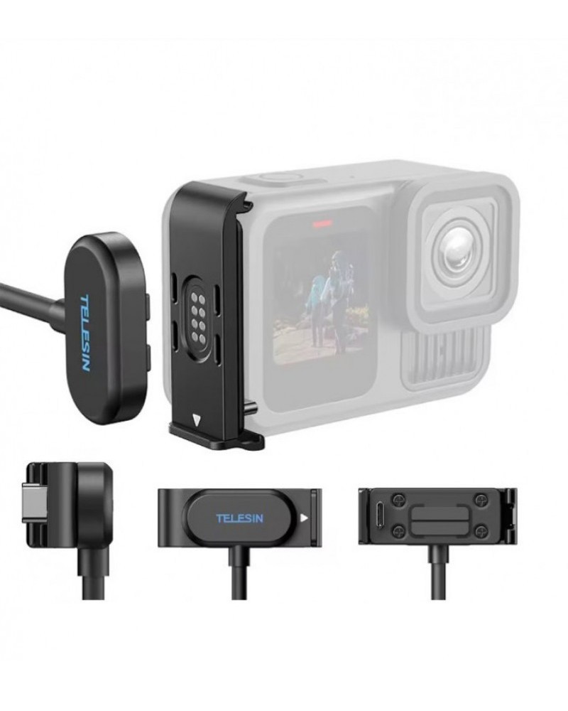 Магнитная боковая крышка TELESIN для зарядки и кабель питания для GoPro Hero 9-13 Black
