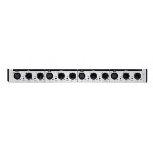 Четырехканальный пассивный распределитель симметричных аналоговых звуковых сигналов с трансформаторной развязкой. Устройство позволяет распределить сигналы линейного уровня от одного источника к двум приемникам по 4 независимым каналам. Наличие дополнительного экрана позволяет работать с сигналами микрофонного уровня, а использование трансформаторов с сердечниками из Mu-пермалоя обеспечивают отличные частотные и амплитудные характеристики. Трансформаторная развязка размыкает земляной контур и гальванически изолирует потребителей друг от друга и от источника, предотвращая попадание наводки сетевой частоты и ее гармоник в полезный сигнал, а также обеспечивает защиту от наводки, поступающей по общему проводу (экранирующей оплетке) от подключенных к распределителю устройств. Каждый выход распределителя оснащен тумблером разрыва/соединения земель (GND/LIFT) для оптимизации структуры заземления устройств в зависимости от конкретного применения. Распределитель выполнен в виде одного модуля высотой 1U с креплением в стойку 19". Прочный металлический корпус предохраняет прибор от механических повреждений.