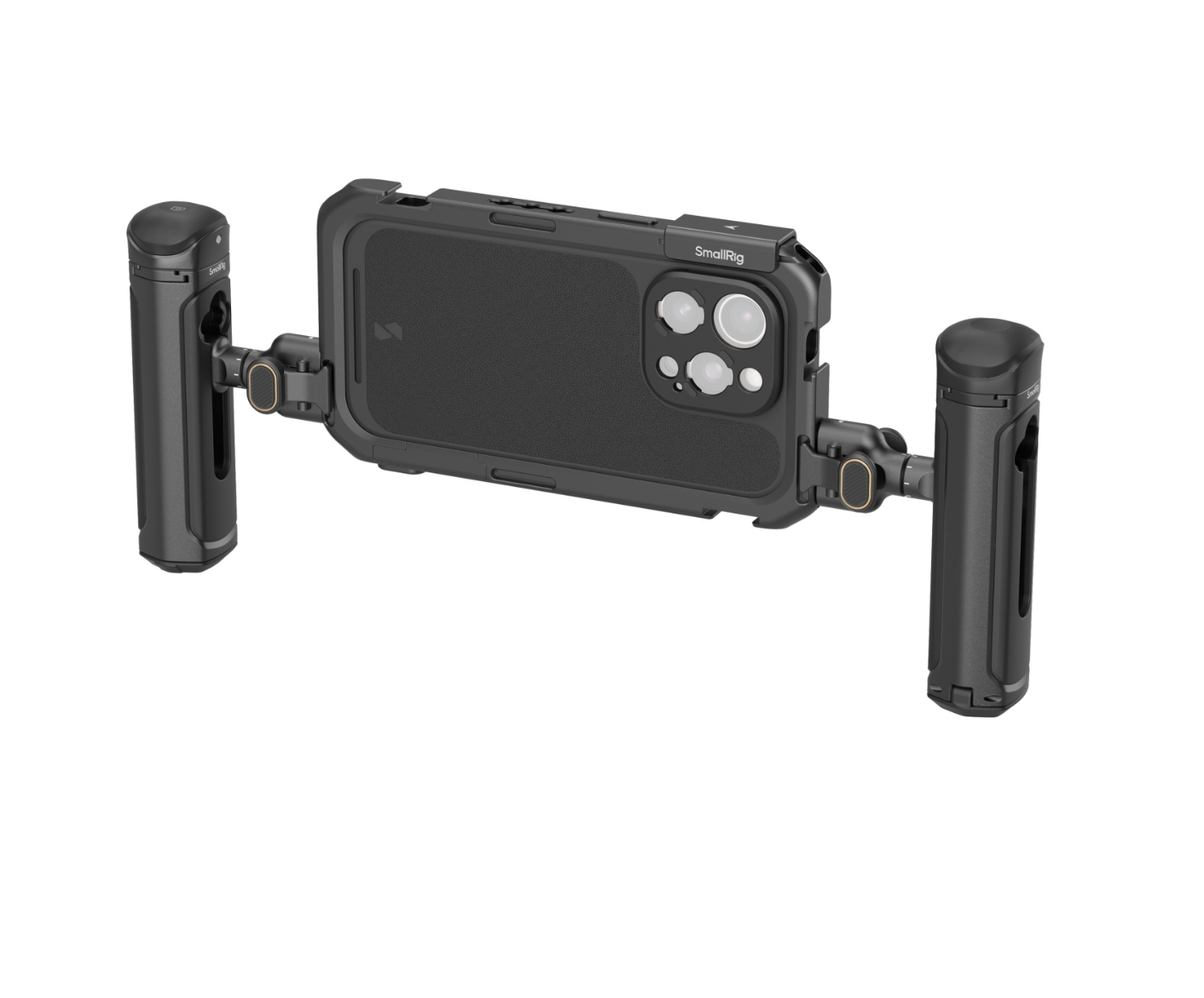 Мобильный видеокомплект SmallRig клетка для iPhone 16 Pro Max 5005 включает в себя две ручки с кнопк..