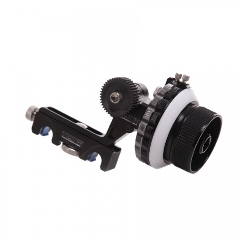 Фоллоу-фокус FF-T03, который предназначен для управления фокусировкой объектива. Он устанавливается на 15мм направляющие, имеет два уровня демпфирования и два регулируемых упора для точности управления. Комплект включает шестерни и кольца разных стандартов, обеспечивая совместимость с различными объективами, как с ручной, так и с автоматической фокусировкой.